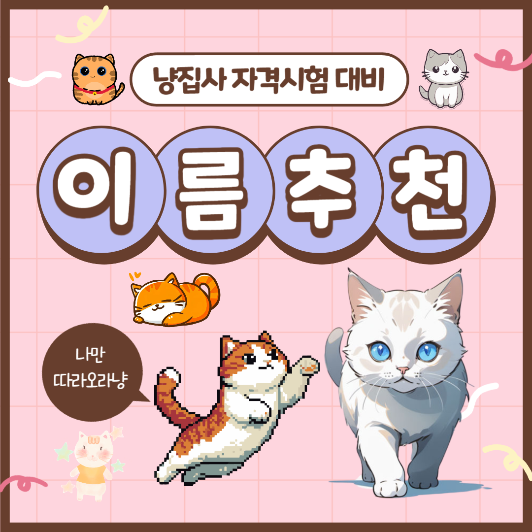 [4] hyeeepp.com - 흔하지 않고 귀여운 고양이 이름 추천과 주의할 점 (https://hyeeepp.com/entry/%ED%9D%94%ED%95%98%EC%A7%80-%EC%95%8A%EA%B3%A0-%EA%B7%80%EC%97%AC%EC%9A%B4-%EA%B3%A0%EC%96%91%EC%9D%B4-%EC%9D%B4%EB%A6%84-%EC%B6%94%EC%B2%9C%EA%B3%BC-%EC%A3%BC%EC%9D%98%ED%95%A0-%EC%A0%90)